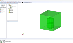 Bangun model 3D es + lingkungan fluida (udara/air)
