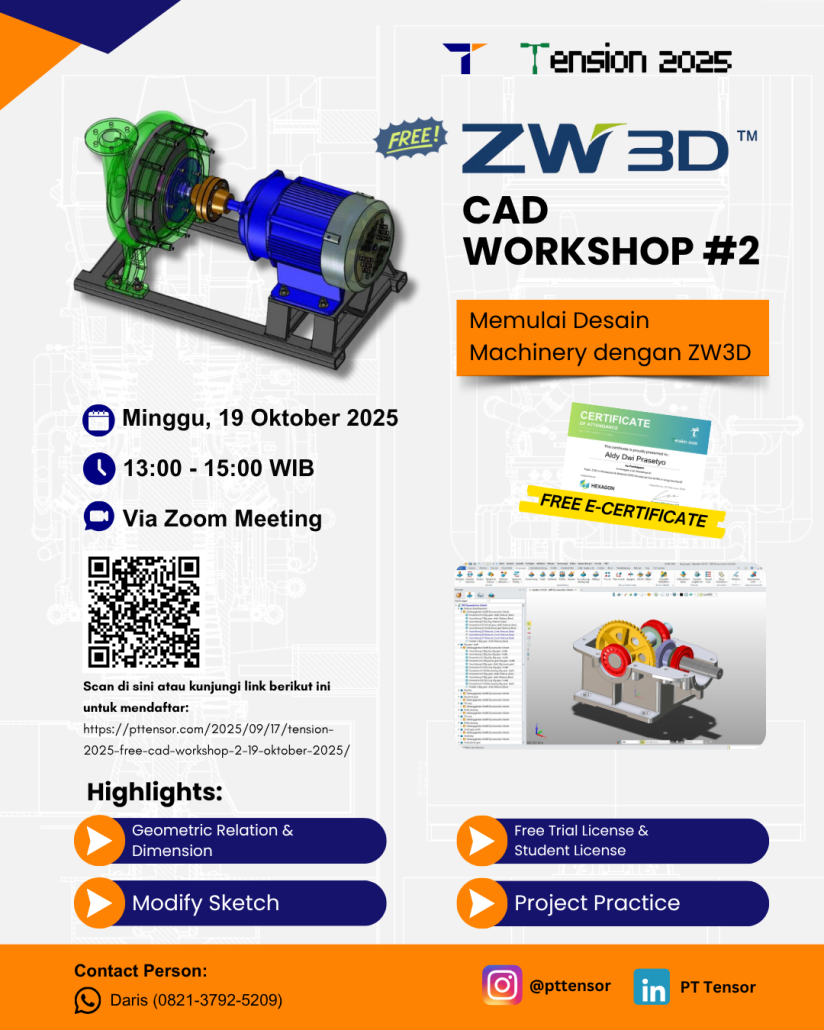 Biaya: GRATIS!!! (termasuk materi workshop, sertifikat, dan trial license ZW3D 30 hari atau student version 300 hari)