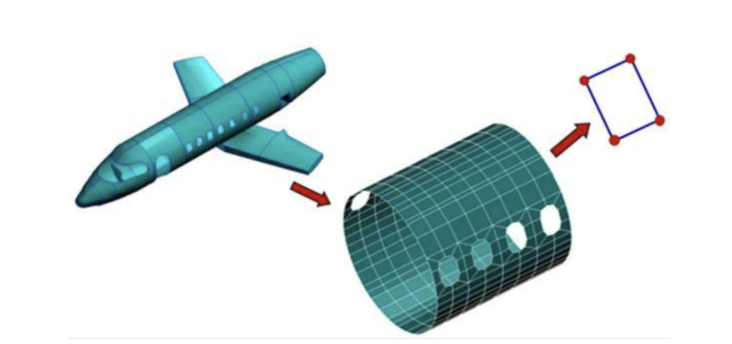 Dalam pemodelan shell element, geometri struktur direpresentasikan sebagai permukaan dua dimensi (2D), sementara efek ketebalan dimasukkan sebagai parameter tambahan. Meskipun hanya dimodelkan sebagai permukaan, shell element mampu menangkap perilaku mekanis yang kompleks seperti bending, membrane (tarik/tekan dalam bidang), serta shear. Hal ini menjadikan shell element sebagai pilihan yang sangat efektif untuk analisis struktur tipis.