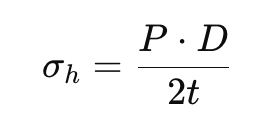 Dalam sistem perpipaan, tegangan siklik dapat berasal dari berbagai sumber, seperti fluktuasi tekanan internal. Tegangan akibat tekanan dapat dihitung menggunakan hoop stress: